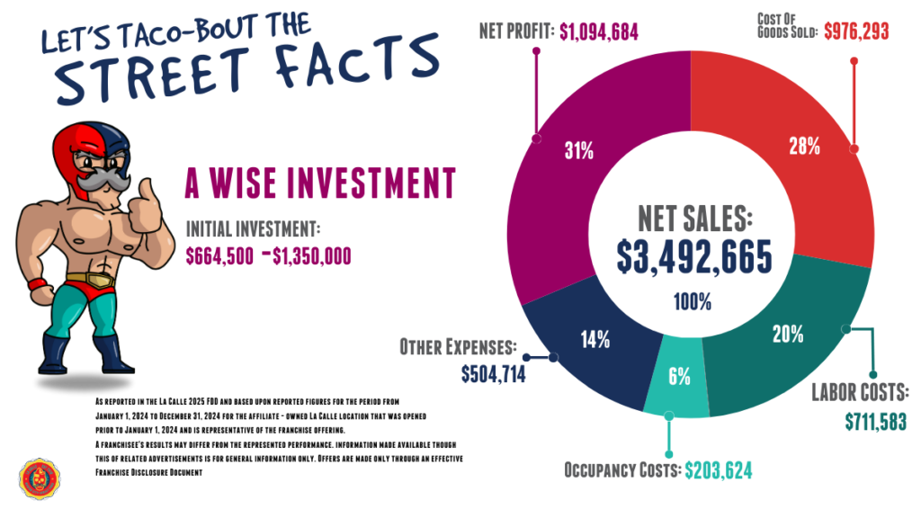 Disclaimer: Information made available through this web site regarding the La Calle Franchising, LLC (La Calle) franchise opportunity is for general information only and is not intended to be a franchise offer. Offers are made only after delivery of an effective Franchise Disclosure Document in compliance with applicable federal and state laws. None of the communications made through this web site should be construed as an offer to sell any La Calle franchises in, nor is any such communication directed to the residents of, any jurisdiction requiring registration of the franchise before it is offered and sold in that jurisdiction. No La Calle franchises will be sold to any resident of such jurisdiction until the offering has been exempted from the requirements of, or duly registered in and declared effective by, such jurisdiction and the required Franchise Disclosure Document has been delivered to the prospective franchisee before the sale in compliance with applicable law.